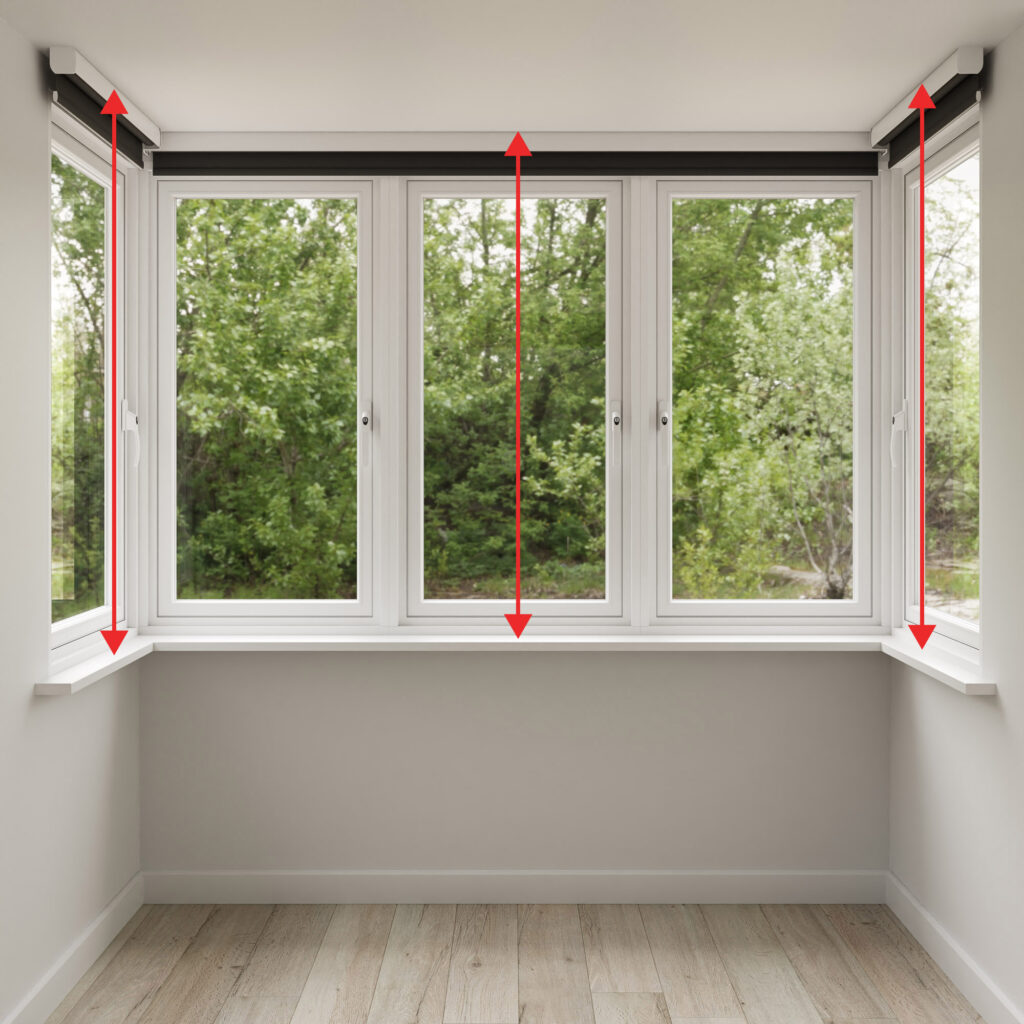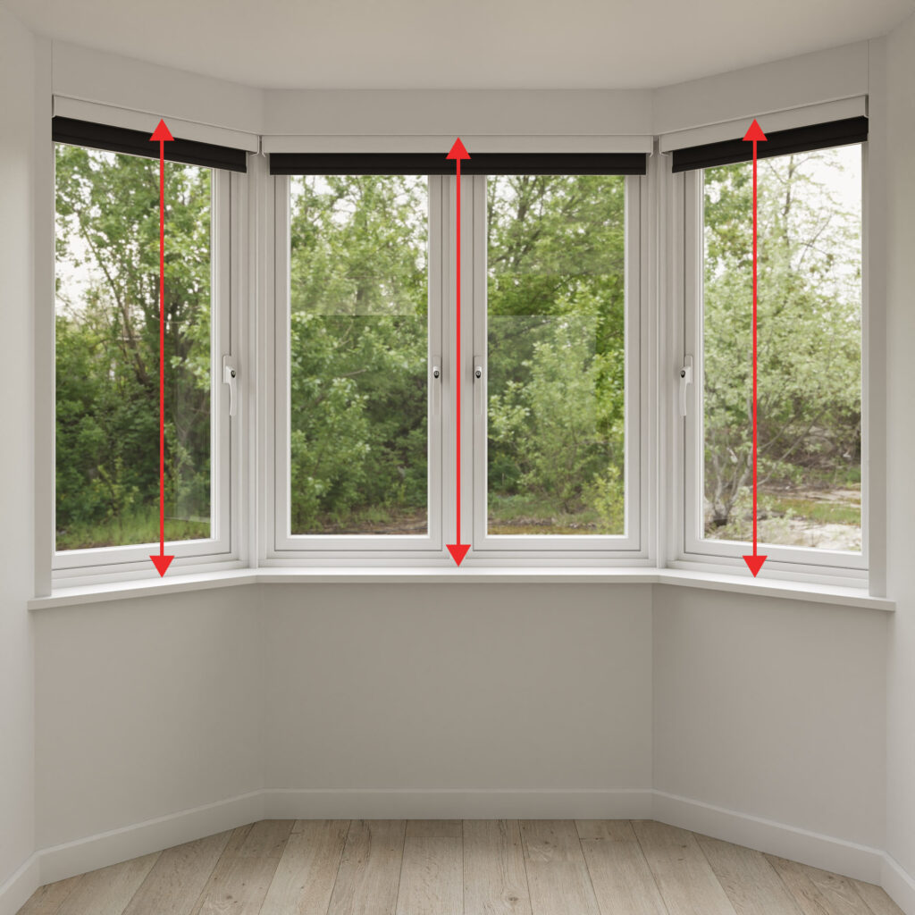 Measure the entire width of the bay’s side windows, including the frames. Use these measurements as your width references when ordering your side blinds.