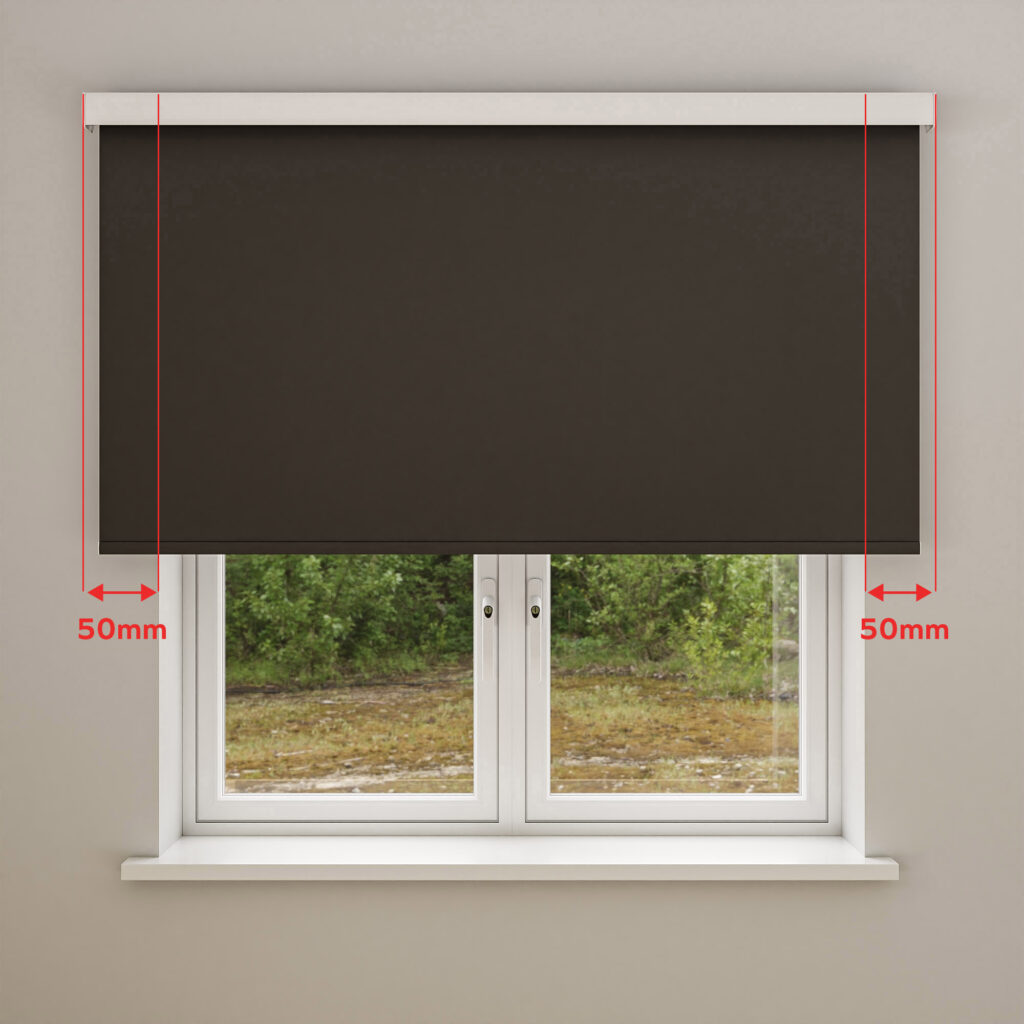 Overlap – We suggest an overlap of at least 100mm on either side of the window recess. This means including an extra 200mm in your width measurement (in addition to the width of the recess). Top tip: check for any obstructions, such as light switches, to ensure that no objects conflict with the blind overlap.